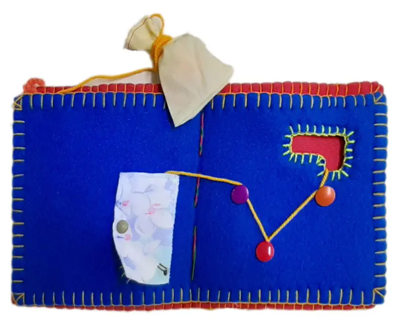 "نخ و سوراخ" کتاب پارچه ای، حسی – لمسی و مفهوم آموزی است که در قالب یک بازی طراحی شده است. کودک نخ را از سوراخ ها و موانع گوناگون می گذراند و سرانجام عروسکی را داخل کیسه پیدا می کند. این کتاب سبب ایجاد مهارت های حرکتی ظریف، برانگیختن کنجکاوی، تحریک حس لامسه، تشویق به حل معما در کودکان و آشنایی آن ها با مفاهیم باز کردن، گره زدن، عبور دادن و ... می شود.