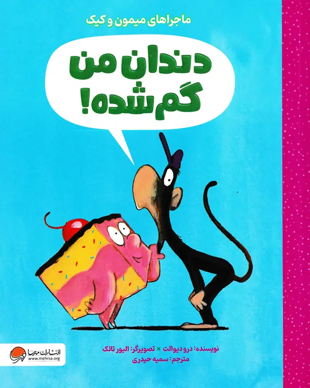 در «دندان من گمشده!» میمون متوجه میشود یکی از دندانهایش افتاده و پیدا نمیشود. او مضطرب و نگران است: اگر پری دندان نیاید چه؟ اگر دندان هیچوقت پیدا نشود چه؟ کیک سعی میکند او را آرام کند و با او دنبال دندان بگردد. در پایان، نتیجه مهم نیست؛ مهم این است که آنها با هم بودهاند. این جلد از نزدیکترین تجربههای کودکی الهام میگیرد: افتادن اولین دندان شیری! در این تجربهی ساده، موضوعاتی عمیق نهفته است: آیا باید چیزهایی را که نمیبینیم باور کنیم؟ کودکان با از دست دادن چیزی مهم مواجه و مضطرب میشوند. حضور کیک در کنار میمون، نشان میدهد که همدلی مهمتر از نتیجه است. این کتاب ابزاری عالی برای والدین است تا با کودکان دربارهی تغییرات جسمی، اضطراب ناشی از آن و مفهوم پذیرش و عدم قطعیت گفتوگو کنند.