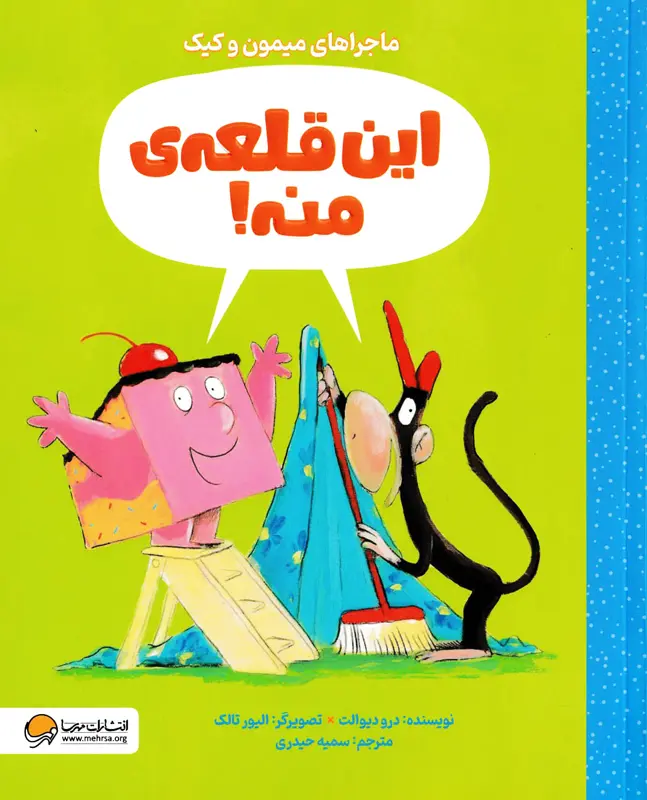 در «این قلعه منه!» میمون با بالشها و جعبهها قلعهای میسازد و اصرار دارد که این قلعه فقط برای خودش است. کیک میخواهد وارد قلعه شود، اما میمون اجازه نمیدهد. آنها در نهایت درمییابند که اگر قلعه را با هم به اشتراک بگذارند، لذت بازی بیشتر خواهد شد. موضوع محوری این جلد مالکیت در برابر همکاری است. بچهها تمایل دارند بگویند «این مال من است» و گاهی در بهاشتراکگذاری اسباببازیها مقاومت میکنند. دیوالت با طنز و تضاد بین شخصیتها نشان میدهد که انحصارطلبی میتواند به تنهایی و از دستدادن فرصتهای شاد منجر شود. در این کتاب، کودکان میآموزند که همکاری و اشتراک، شادی بیشتری میآورد. مربیان و والدین میتوانند از این داستان برای آموزش مفهوم «برد-برد» استفاده کنند. این کتاب راهی را برای مدیریت تعارضهای روزمره بین خواهر و برادرها پیش پای والدین میگذارد.