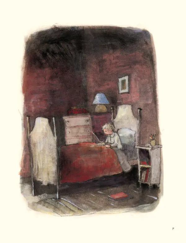 ناگهان شنیدم که کسی به پنجره می‌زند. او مردی بسیار کوچک بود که کت‌و‌شلواری چهارخانه به تن و کلاه بلند سیاهی به سر داشت. او گفت: «اسم من ساقه‌ی سوسن است من در همه‌جای این شهر گشت می‌زنم و از کنار پنجره‌ها می‌گذرم تا ببینم آیا بچه‌هایی هستند که بخواهند به سرزمین گرگ‌ومیش بیایند. شاید تو هم بخواهی بیایی؟»